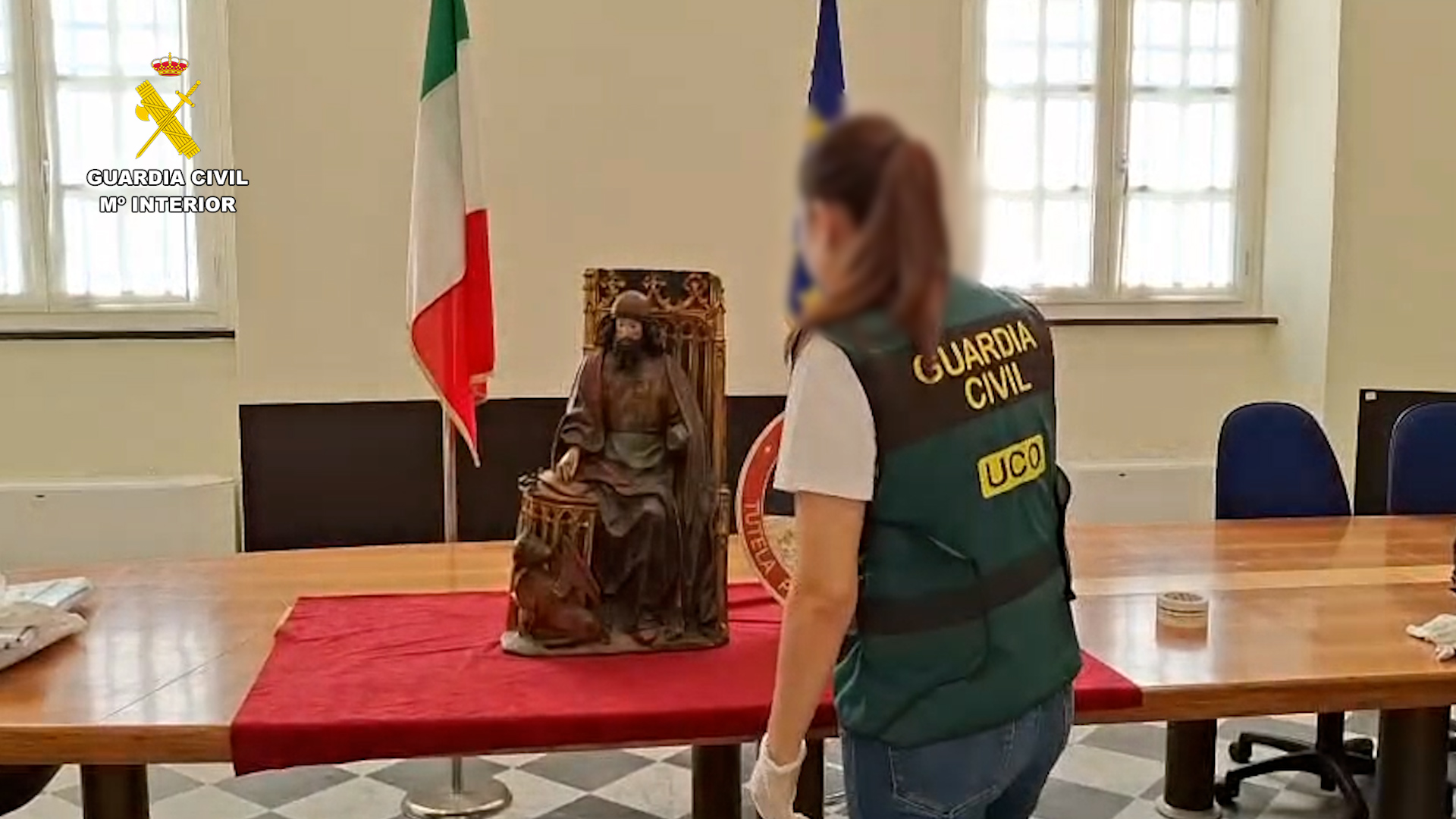 La Guardia Civil, en una operación conjunta desarrollada con el Comando para la Tutela de Protección del Patrimonio Cultural de los Carabinieri (TPC), ha recuperado en Génova (Italia) una talla del siglo XV robada en diciembre de 1979 en Astudillo (Palencia), atribuida al famoso escultor Gil de Siloé, y que representa a San Lucas.